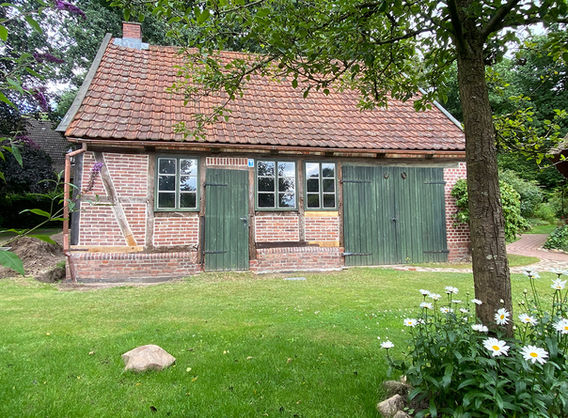 Das Fachwerk erstrahlt mit neuer Lasur in frischem Glanz und auch die Fenster und Türen haben einen neuen Anstrich bekommen.